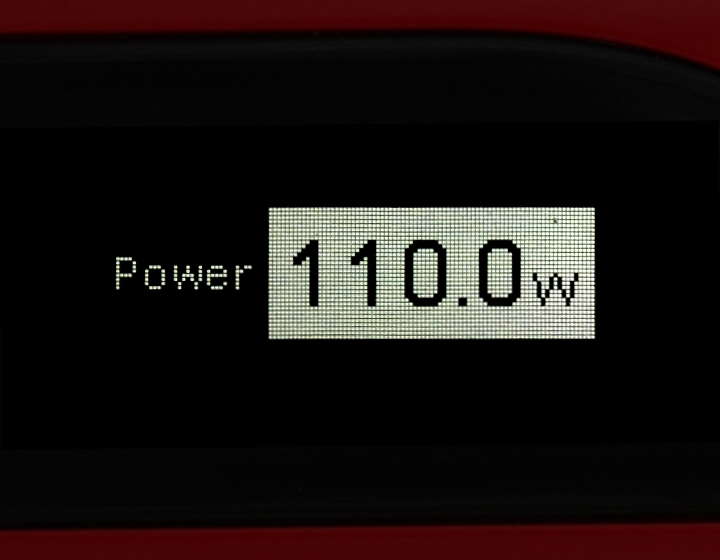 Le réglage est possible de 1 à 220W par incrément de 0.1 W, l'appui prolongé sur le bouton accélère de plus en plus la vitesse de défilement.